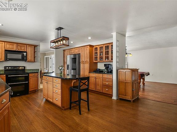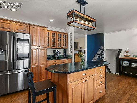 Country living with the benefits of being close to town and only eight minutes to the convenience of I25. Panoramic views of Mount Herman to the west and city lights to the east. Perfect property for your hobby farm. Bring your horses, goats, chickens to this fully fenced 5 acre property. Accessed by a solar electric gate, this exquisite retreat features a charming pond, 30x20 pole-barn w/ electricity, a two stall barn, wood round pen, loafing shed, & a delightful chicken coop, perfect for all your fur and feathered friends. Enjoy the indoor heated swimming pool or private hot tub while enjoying the benefits of fully paid off solar panels, providing both sustainability and savings. Step inside this beautiful three-level home to discover a spacious and inviting interior. The heart of the house boasts a stunning kitchen featuring soapstone countertops, soft-closing natural wood cabinetry with elegant crown molding, a generous island and a double oven- an ideal setup for entertaining family and friends. All kitchen appliances are included, making your move-in seamless. With five spacious bedrooms and three well-appointed bathrooms, there’s plenty of room for everyone. Two separate living room areas provide the perfect spaces for relaxation or gatherings. Enjoy formal dinners in the large dining room that opens directly to the backyard, offering a seamless flow of indoor-outdoor living. Cozy up on cooler evenings by the warmth of the pellet stove and experience cooling comfort with the whole house fan. The indoor pool is a standout feature, providing chlorine-free, bromine-treated water for a safe and enjoyable swimming experience year-round. With a pool heater to keep the water at the perfect temperature and skylights and large windows to engulf the area in natural light, you’ll love unwinding in your private oasis- this 35x28 indoor space adds about an additional 980SF to the home- unheated. Schedule a viewing today to experience everything it has to offer!