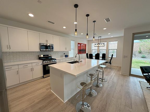 Brand new 4 bedroom, 3 bath home, fully furnished with all new carpet in Bedrooms and new tile through out. All new appliances including washer and dryer, 2 bay garage, Solar installed to keep electricity costs low. Children's playground and dog park. Community pool available this summer. Renter is responsible for water, gas and electric. No smoking indoors. Leases under 1 year will be $6,000.00 monthly and will include water, gas and up to $500.00 monthly electricity.