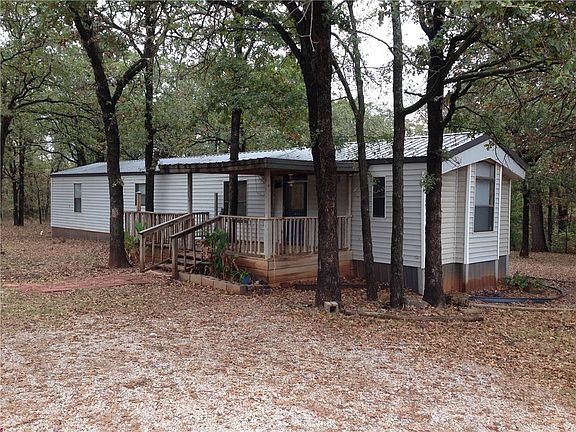 Enjoy this peaceful 5 acres with a 2 bedroom mobile home. There is a 1 car detached garage, barn and 2 storage buildings with electric to all. New metal roof on the house and storm shelter right outside.