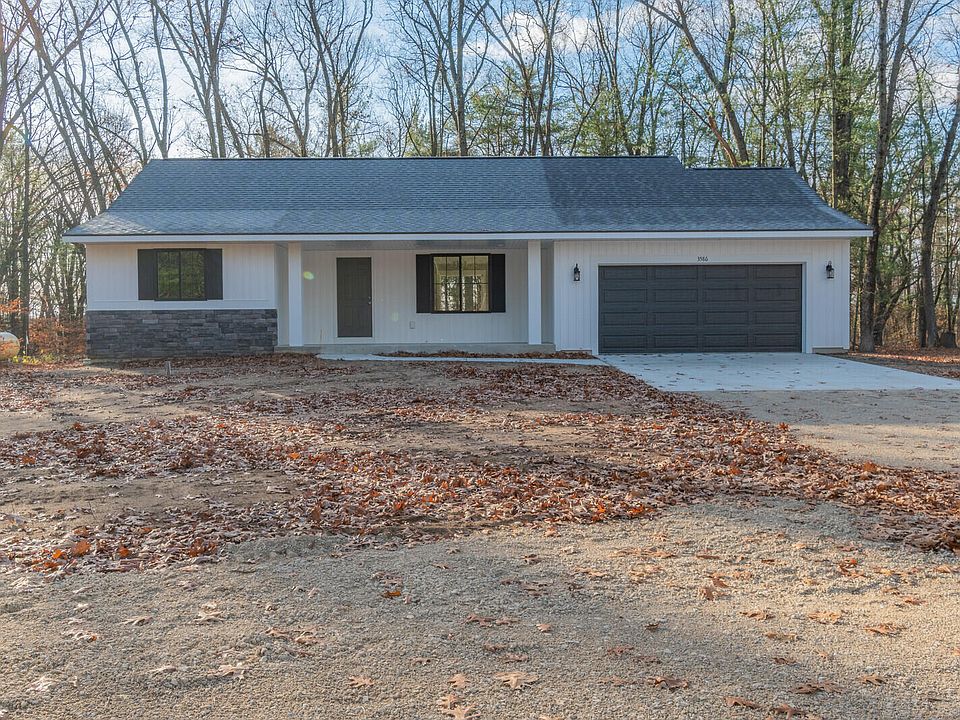 Charming just completed ranch home on almost an acre in a quiet neighborhood just a short walk to Lake Allegan! Features a covered front porch & a partially covered patio off the dining area. Inside you'll find a spacious Tray ceiling in the Living/Dining area. Kitchen is lined with cabinets and features center island, granite tops and stainless appliances! Oh yes...2 bedrooms on the main level with more room for expansion on the lower level with egress windows & roughed in bath.