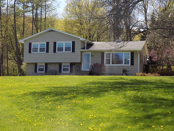 This home is sitting on an absolutely lovely 1.7 acres with Views, a Barn and Tree House! It has tons of natural light and a flowing floor plan. There are hardwood floors, replacement windows thru out the home, and a replaced oversized sliding door to rear deck. The kitchen has stainless steel appliances, recessed lighting, glass top dual oven and newer laminate floor. There are four bedrooms and two full baths, one bedroom and one bath are on the lower level, and the bath has a walk-in shower. The family room (w/venting for pellet stove if preferred) has tons of storage. Entering the side door from the blacktop driveway is a nice large entryway. Spectrum internet is available at the home as well. The grounds are just beautiful, level fenced in yard, large rear deck with canopy and fan, fully landscaped, 225' re-drilled well with lighthouse covering. Property becomes more wooded and slops slightly down to the barn, firepit and the tree house. Really, to nice to describe a must see!