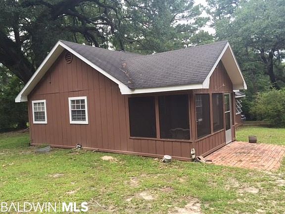 Older 3 bedroom ,one bath home surrounded by large oak trees on 5.7 acres in the Spanish Fort school district .There is a detached garage,storage building and a barn on the property . Home has enclosed front porch (8x20) and screened side patio (8x14). Home is well taken care of just needs updates .Home would make a good rental if you wanted to build your dream home on remaining property . Property has large trees .