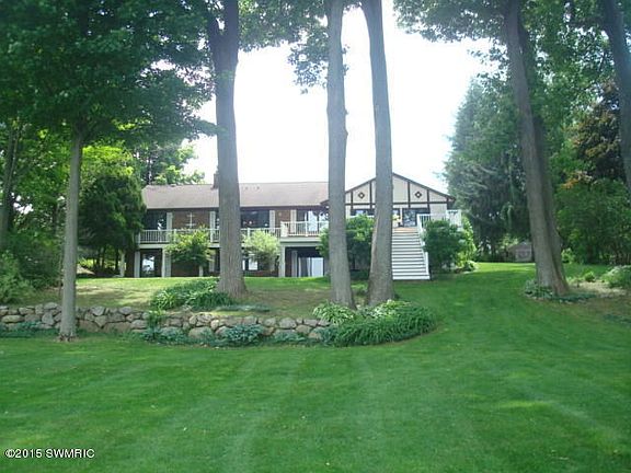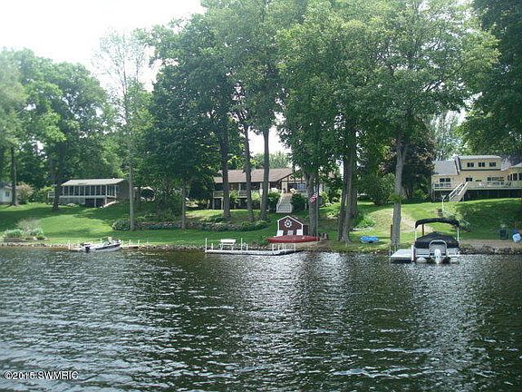 Full recreational Mill Lakefront home for $495,900. Approx. 1.4 acres of privacy on this beautiful private spring fed lake. 3 Bedrooms, 2 bathrooms on the main level with an additional bedroom/den & bath in the lower level walk out. Large custom kitchen with center island, white oak flooring & lots of cabinetry. Lakeside dining & living room areas both with gas fireplaces. Main floor wet bar. Lower level has a large open flow family room/recreational room with an additional wet bar. Lake side deck, fire pit, shed & two aluminum piers. Lots of storage!! Plenty of parking. Attached 2 car garage with attic storage. Large 56x24 pole barn for all your lake toys & snowmobiles. Marked snowmobile trails in area. 2.5 hours to Chicago, 30 minutes to South Haven. Kal Haven trail 1/2 mile
