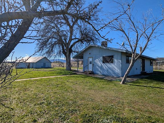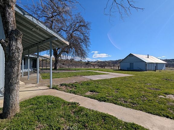 Located approximately 5 miles north of Elk Creek, with Grindstone Creek running through a portion, this 22 acre property (2 assessor parcels) includes a two bedroom, two bath home, a 24'x60' (approx) shop and a freestanding two-car carport. The home sits up on the bluff, and has exceptional 360 degree views ...... the view of the mountains with the sunsets and approaching storms can be amazing! This comfortable home has an open floorplan, with a pellet stove in the living room. The laundry room is huge and was designed to be a sewing/craft room. The property is all electric, with a conventional septic system and well. There are water rights from Grindstone Creek under the Angle Decree; the water master has stated that there are 5.84 acres with a water right of 36.4 acre feet. Currently there is no system in place for taking water from the creek. In the past there was an almond orchard on the property and there are still several trees, most appear to be dead. Of the two assessor parcels, the one with house is 13 acres and the parcel to the south is 9 acres (per County Assessor records).