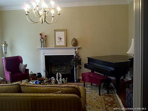 Priced reduced! A beautiful patio home loaded with extra features. The living room has 10 ft ceilings with crown moldiong, gas fireplace and wood flooring. Gorgeous tile floor in kitchen, dining room, sun room and utility room. Custom kitchen cabinets with island and kitchen appliances. Master bedroom has cathedral ceiling with a large bathroom, double vanity sink, shower and a walk-in closet. Sun room has tile floor with AC/heater unit. Great open floor plan. Two car garage with pull down stairs for additional storage. Owners can enjoy and entertain guests at the clubhouse which includes the pool and exercise room. Sq ft and room sizes approx.\n\nInformation Deemed Reliable But Not Guaranteed. Information provided by the Southern Indiana REALTORS® Association, Inc. © 2010 SIRA Multiple Listing Service. All rights reserved. Brokered And Advertised By: Waiz Real Estate Listing Agent: Robert Waiz, Jr.