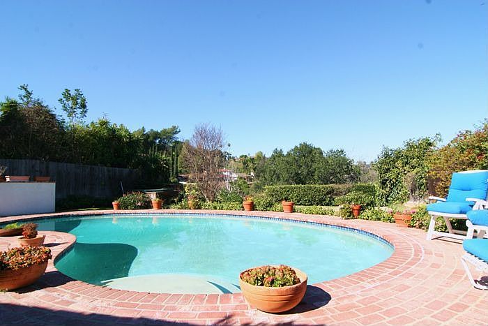 LOVELY POOL HOME WITH GRASSY YARD AND VIEW! 1 STORY WITH 3 BEDROOMS. ENTER THE HUGE OPEN LIVING ROOM/DINING ROOM WITH VAULTED WOOD BEAMED CEILING AND FIREPLACE. WALL OF FRENCH DOORS OPENS OUT TO FABULOUS POOL/ENTERTAINING WITH LARGE GRASSY YARD AND VIEWS! MASTER SUITE OPENS OUT TO POOL. KITCHEN WITH BREAKFAST NOOK, WALK-IN PANTRY, AND LARGE LAUNDRY ROOM. COZY DEN WITH FIREPLACE AND BAR. RELAXING SUN ROOM OFF OF LIVING ROOM. QUIET, EASILY ACCESSIBLE CUL-DE-SAC- IN THE HILLS!