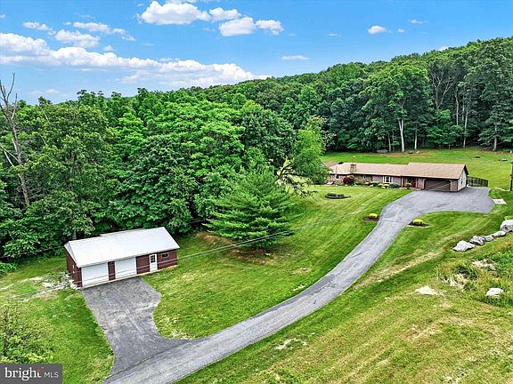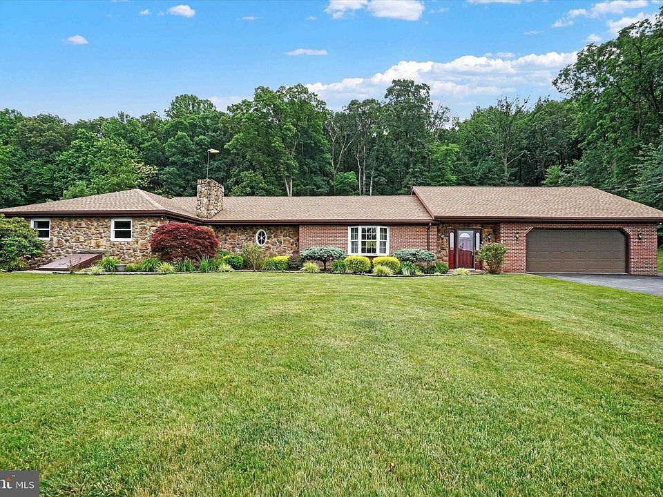 OFFER RECEIVED LAST SHOWING WILL BE 6/26/24 7PM ALL OFFERS SUBMITTED BY 11AM 6/27/24 AND WILL BE PRESENTED MID AFTERNOON Insomniac Special ........ The fresh air surrounding this 3BR, 3BA rancher, set on 5+ acres and adjoining Rocky Ridge Park, seems to have a remarkable effect on people. Whether gardening, swimming in the pool, or hiking on one of three paths leading into Rocky Ridge Park, your tensions will seem to vanish. Located in a very private world that's only a short commute to Rt30 and a plethora of conveniences, this happy home offers unparalleled vistas, STUNNING sunsets, a sense of spaciousness, and indoor/outdoor entertaining areas that merge together in perfect harmony. The home blends into a wooded hillside home to deer, turkey, raccoon, squirrels, birds and whatever else Mother Nature sends your way. It showcases a mostly freshly painted interior, newly remodeled full bathrooms and bedrooms, a NEW HVAC system, and more updates. Everything is conveniently placed on 1-floor for easy carefree, luxury living. A vaulted ceiling dining room has a pass-through bar into the kitchen. The kitchen opens to the bar area of the large family room showcasing a brick fireplace, with woodstove insert. French doors lead to a 4-seasons room of sliding glass doors overlooking a secluded backyard with a sparkling pool. The primary suite features a walk-in closet and private full bath with a whirlpool tub/shower. The laundry and third full bath are conveniently located off the patio, so pool guests aren't running through the home in their bathing suits. Patio areas are found along the entire rear of the home and offer great extended living space. One area has awning coverage. A pool house, with bar area, storage room, and half bath offers more shade for hot summer days and the perfect spot for family and friends to gather. A 2-car garage, with storage room, is attached to the home, but there is also a detached 2-car garage, with a rear 1-car garage. Just imagine the fun you can have tinkering! There's even an engine hoist for easy lifting. With 5 acres you have plenty of room to roam, and with Rocky Ridge Park behind you, it truly is a very private setting. A large level area to the left of the home was established for a future tennis court, but the previous owner never finished it. Good thing, you might prefer a pickleball court now! Previous owner also had hot tub on deck pad, off full bath/laundry area. Hot tub removed, but electric line still in place for future hot tub. If you are a horse lover, you will be thrilled to know horses are permitted per the zoning ordinance. Seller notified by York Water Company public water is available, from Druck Valley Rd. This property is the ideal place to escape the world! AGENTS - Please read Agent Remarks.