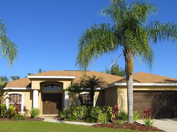 Nicely maintained 3 bed/2 bath split plan home in south Lakeland community with sidewalk fitness trail, playground, pavilion, and ponds for fishing near Lakeland Linder International Airport and less than 8 miles from I-4 with easy access to both Tampa and Orlando. Less than 12 years old, this home features an eat-in kitchen with breakfast bar, stainless appliances, ample counter space and cabinets, in addition to a separate dinette. The family room boasts a vaulted ceiling and sliding glass doors to the rear screened patio which floods the common areas with natural light. In addition there is both a formal dining room and living room with glass paned french doors which can also function as an office, playroom, craft room, man cave or a 4th bedroom. The master suite is spacious and the bath features both a shower and a garden tub, separate toilet room, dual sinks, and a built in vanity. The laundry room is inside and the 2 car garage is attached. All of this resides on a beautifully landscaped conservation lot that creates a tropical oasis of sorts in back with an open patio with wooden trellis and a pavered pad for grilling. With no rear neighbors, relaxation awaits you. The only thing missing is you and your hammock!