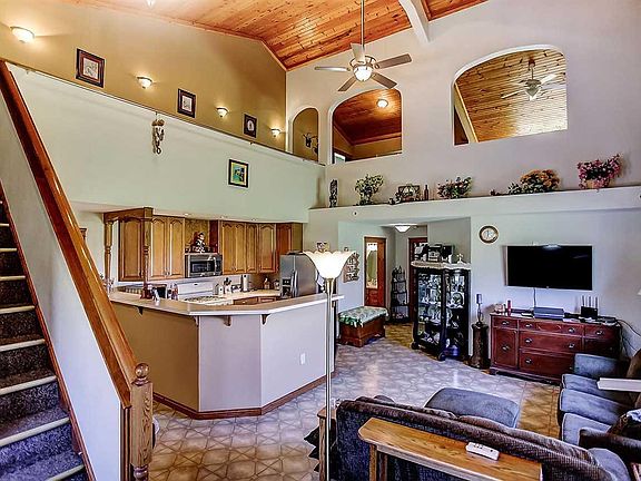 Welcome home! Well cared for unique home with almost 6 acres. Over 2100 sq. ft. of living area in this beautiful 42x85 Finished Pole building. The main level features a master bedroom, 2 full baths, Laundry room, Living room and Kitchen. Tongue and groove ceilings add extra character. Extras include 6 panel doors, Jet tub, Invisible fence, tons of storage. The upper level has endless possibilities with 2 bedrooms a full bath and bonus rooms. The high tech heating system consists of Floor radiant zoned heat throughout the whole building, making it energy efficient. The home has 200 amp electric, the building section has it's own 100 amp. The Pole building section features a 31x24 Workshop and a 29x24 shop or man cave. Upper level has tons of storage. An additional bay can accommodate a large RV.
