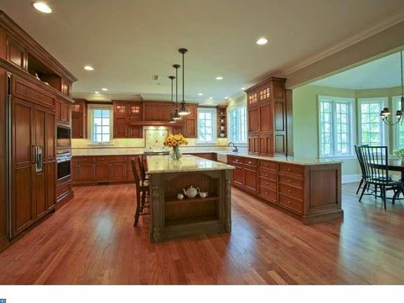 Located in one of the most prestigious neighborhoods in Bucks County, this meticulously maintained home is nestled amongst 26 custom homes in the Stoneymead community. Built by Trueblood, this extraordinary house is situated on 1.5 acres among 80 lush bucolic acres with 3 ponds, running stream, and boasting its own natural preserve. You will experience breathtaking views of 1 of the 3 ponds from your own backyard private oasis with stone patio and remote retractable awning. You can also take in the surrounding panoramic views from one of the many interior window vantage points throughout the house. As you enter the open foyer notice the gleaming wood floors and detailed wood work. The front to back entry hall is flanked by the large living room with fireplace and expansive dining room perfect for entertaining. Off the dining area is a butler's pantry leading to the gourmet cooks kitchen with Wolf stovetop w/griddle plus Wolf oven and microwave/convection. Subzero built in and wine fridge, Dacor warming oven, and 2 Asko XL dishwashers. Take in the beauty of nature as you enjoy a meal in your brightly lit breakfast room. Just off the kitchen is the family room with floor to ceiling windows with remote control shades, fireplace, and built in entertainment system. An office with desk and cabinet built ins, separate laundry room, powder room,3 car garage and back stairs leading to the upper level complete the 1st floor. Upstairs there are 5 generously sized bedrooms, 1 of which is large enough to be used as an in-law suite. The master en suite with steam shower, heated floors, air bubble bath, and sound system making for the ultimate spa retreat. 2 of the bedrooms has its own bathroom while the others share a Jack and Jill bath. Also on this floor are stairs leading to a floored attic area. On the lowest level is the walk-out basement with a fitness room with Torque All in One universal gym, built in wet bar, media room, pool table area all with heated radiant floors and a powder room. In close vicinity to New York and Philly, this home is conveniently located and minutes from Peddler's Village, Doylestown Borough, New Hope, and all the history that Bucks County has to offer. NOTE: Public Records incorrect. Building Plans shows 6856 as total square footage.