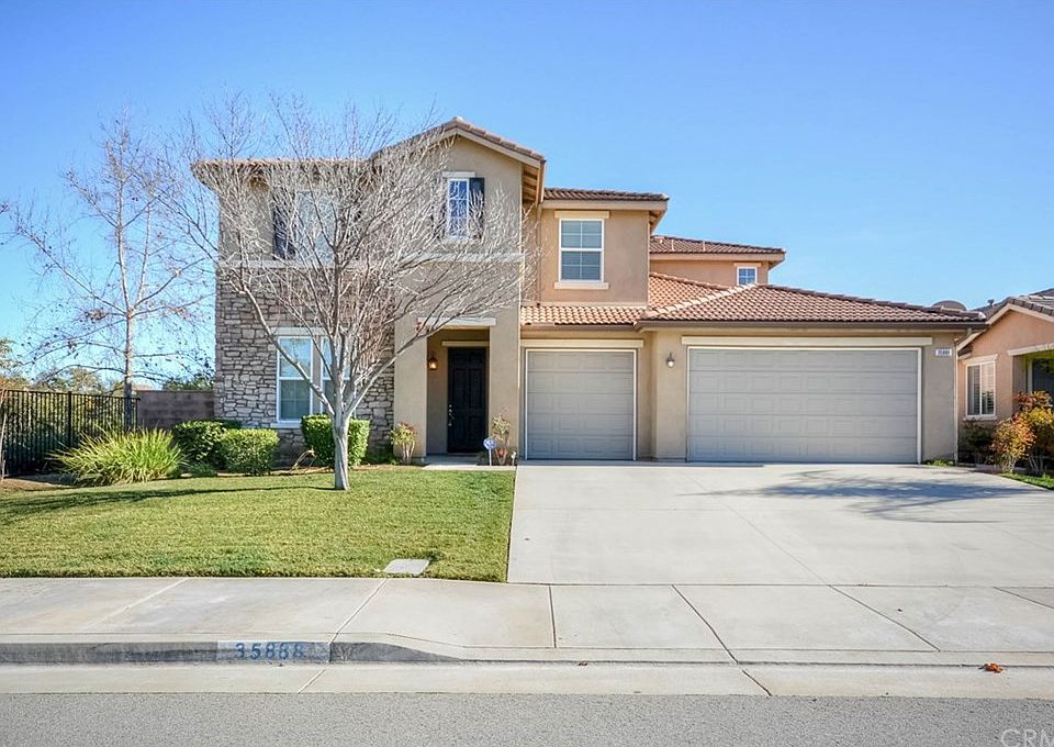 Beautiful home is conveniently located in Estrella Hills community with privacy (no neighbor behind and no neighbor is on the left). Spacious floor plan, Bright and airy. Goodsized 5 bedrooms, 3 bathrooms (1 bedroom and 1 full bath downstairs) plus a loft. Custom tile and carpet in neutral warm tones complement the color scheme. Gourmet kitchen is included stainless steel appliances, double ovens, granite counter top, raised breakfast bar, and walk-in pantry. Wrought iron staircase leads to a huge loft and enjoyable master suite off balcony patio with views, Master bath has dual sinks, separate shower and tub, and vanity. Professionally landscaped backyard, Low maintenance. Close to shopping, restaurant and bank. Easy access to 15 and 215 freeways.