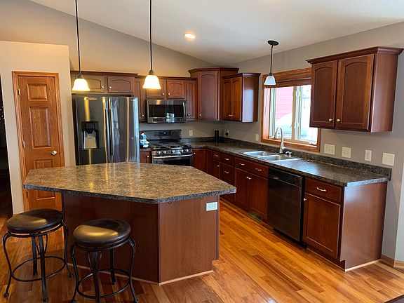 Beautiful 3004 sq. ft. home on 5-acre city park in Badger Hills neighborhood. Open-concept floor plan with 5 bedrooms, 3 baths, master suite with walk-in closet, hardwood floors, large family room, vaulted ceilings, high-end appliances, and large 3-car garage. Tons of upgrades including huge maintenance-free deck, steel siding, large storage shed with matching siding and trim, a raised-bed garden, and a professionally-installed security system. Move in ready!