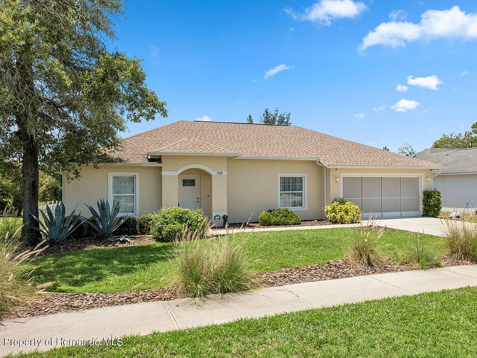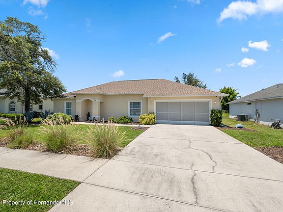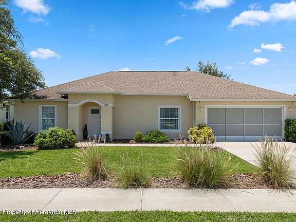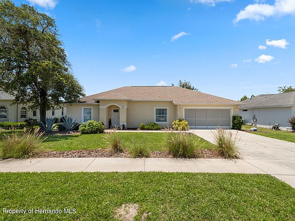 Active Under Contract - Accepting Back Up Offers. What does ''home sweet home'' mean to you? Discover it here! This Daisy model, built by Ronald King Construction, is located in the deed-restricted community of Deerfield Estates. New gutters and a sliding garage screen enhance the considerable curb appeal of this beauty. The meticulous landscaping is lush thanks to the irrigation system, which also has garden soakers in the front yard. A security camera with a large screen monitor provides peace of mind when it comes to safety. Wiring and lighting have been updated, and there's a subpanel in the garage for maximum efficiency. Step inside to explore a tasteful, yet functional, open-concept, split-bedroom floor plan. A gourmet eat-in kitchen with all the bells and whistles will inspire you to up your cooking game. It features several modern upgrades, including quartz counters, glass front and shaker cabinets, a subway tile backsplash, and wood-look plank tile flooring. The stainless steel appliances include a built-in microwave and a smart oven with an air fry function and an internet connection, allowing for the latest software updates. Stir up some trouble over the electric cooktop, or maybe just heat the kettle for a relaxing pot of tea. The adjoining dining area is ideal for sit-down meals; or, you can park snacks and drinks on the breakfast bar overlooking the spacious living room while you host game night. Looking for some respite at the end of the day? Retreat to the expansive and private primary bedroom, where you'll find an enormous walk-in closet so you can keep feeding that Amazon habit. The ensuite bathroom has a standalone shower. Your family or visitors can relax in the remaining two guest bedrooms, which have plenty of closet space. They share a guest bathroom with a tub/shower combo. An indoor laundry room serves as a transitional entry from the garage to the main house, and it has cabinetry so you can stash extra belongings. The screened porch is made for lazy afternoons with icy pitchers of sweet tea or lemonade; it overlooks a private backyard, enclosed by new fencing, with lots of room for little ones or pets to play. There's even a shed that's wired for electricity - think potential workshop or climate-controlled storage. You're minutes away from the complex that houses all of the Deerfield Estates amenities, which includes the community pool, clubhouse, fitness center, and sports courts (basketball, shuffleboard, and tennis). There are not one, but two magnet schools adjacent to the community: Chocachatti Elementary and Nature Coast Technical High School. There are plenty of shopping and dining options in the area. A nearby entrance to the Suncoast Parkway makes your commute to Tampa less than an hour. Popular swimming destinations like Roger's Park and Pine Island are less than 30 minutes west. Private showings are available. Embrace Florida living at its finest and get into this home today!