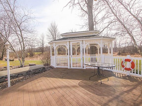 Country Farmhouse Satisfaction - 4.2 Acres! Gorgeous pond w/dock - maintenance free decking & picture-perfect screened gazebo - firepit area. 2 Car detached garage w/a large loft & fenced in dog area & another 4 Car garage/outbuilding w/concrete floor. Brick and concrete patio with a brick walkway that leads to an inviting front porch. The first floor includes a formal living room & study area w/beautiful hardwood floors, full bathroom, country kitchen with breakfast bar, dining area, office, built-in storage, back door drop zone, and a FIRST FLOOR MASTER SUITE w/large master closet! The upstairs includes a loft area, 2 additional bedrooms with large closets, and a full bathroom. The laundry area and workshop area located in the walk-out basement. Updates include: newer exterior doors front & back, luxury vinyl flooring, updated bathrooms, paint, newer appliances, updated lighting, American Standard Mini-Split air conditioning throughout the home, re-stocked pond, additional garage lighting, garden fence, garage openers, and gravel.