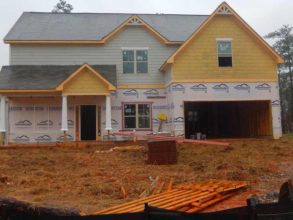 Richardson Housing Group, The St. Thomas. Ask about our all closing costs incentive! Open-concept, modern interior finishes: 10x16 covered back porch w/ gas grill connection, brick-base columns on front porch, wood front door, 42" white kitchen cabinets w/ shaker doors, subway tile backsplash, stainless appliances w/ gas cooking, granite kitchen & bathroom counters, gray laminate floors on main level including great room, white stained brick fireplace hearth, cedar mantel, tile bath floors, tile master shower, built-in cabinets, coffered ceilings.