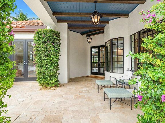 Rarely available, gut renovated and ready for immediate move-in, in Clubside at Woodfield CC. Enjoy your own private courtyard as well as a backyard with golf course views. With 4 BR, and 4.5 baths, this bright and spacious one-story home includes all new: roof, impact windows, custom wood doors, wide plank porcelain flooring that looks like wood, wood-planked ceilings, painted and smoothed walls and baseboards, and custom built-ins. All new appliances, including all A/C units, washer/dryer, hot water heater, Sub-Zero fridge, 4 Sub-Zero freezer drawers, Miele dishwasher, and AGA ''Elise'' oven and stovetop. All home lighting and wiring is new as well. Additional features include a reverse osmosis water system and electric blackout shades in bedrooms. The courtyard features a majestic banyan tree and bougainvillea vines, along with a fully redone pool surface, tiling and all new pool equipment. Your own private renovated guesthouse is the perfect space for an office or overnight visitors (4th bedroom/bathroom).