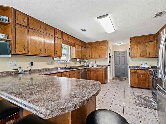 Welcome Home! USDA Eligible Area to qualified buyers. This gorgeous property is more than just a home offering a beautiful layout that includes three bedrooms, two full baths and one half bath. The spacious den is adjacent to an oversized kitchen with breakfast bar, breakfast area, tons of cabinet space, stainless appliances, and a separate dining room. The master bedroom is oversized with walk- in closet and full bath with double vanity. Relax on the rear, covered porch overlooking the expanse of the back yard. Additional amenities include 1.5 acres, double carport and a huge 23 x 25.5 detached workshop. An additional storage area is attached at the rear of the workshop. Seller just removed a fence and is having grass put in part of the back yard. The rear property line is located well into the wooded area at back yard. Call your favorite realtor today to take a tour.