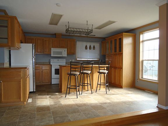 2005 very nice home on 2.35 acres. .Beautiful master suite with garden tub and walk in shower. Double closets. Spacious kitchen with oak cabinets. Detached 2 car garage with cement floor plus root cellar. 60x36 barn with dirt floor, stalls. New carpet 2012, dishwasher 2012, water softener 2012. This property is in the process of being rezoned to residential. Closing date must be early May.