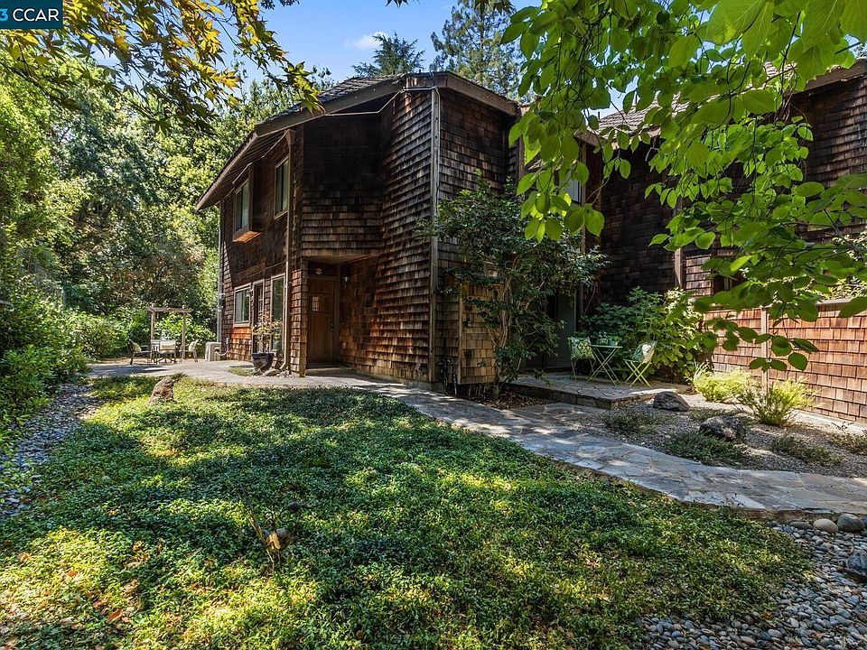 Welcome to an oasis in the heart of downtown Lafayette! Step into the open-concept living area with soaring ceilings, sliding glass doors and bathed in natural light. Cook in the updated kitchen adorned with quartz countertops, stainless steel appliances and ample storage. The primary suite offers relaxation with windows framing scenic views and a spa-like bathroom featuring a soaking tub and walk-in shower. An additional en suite bedroom overlooks beautiful greenery and a patio. The tranquil backyard includes mature landscaping which includes Mexican lime and Meyer lemon trees, hydrangea, rhododendron, jasmine as well as a raised vegetable garden. A perfect spot for morning coffee or intimate gatherings! This home comes complete with in-unit laundry, a detached two-car garage and proximity to local shops, parks, and dining. seamlessly combining convenience and lifestyle. Experience the harmony of peaceful living, modern comforts, and urban convenience all in one remarkable package. Welcome to a lifestyle of serenity and possibility!