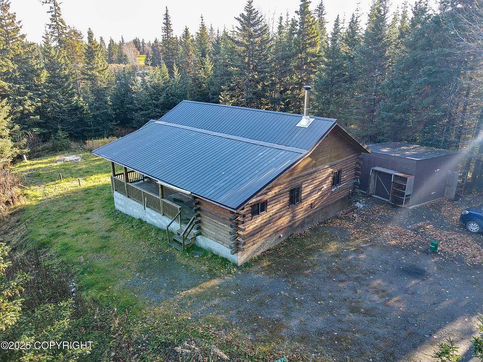 log 4-star+ 3BR 1BA home.. Blaze King wood stove and propane heater. Brand new cook stove and refrigerator/freezer. 10 minutes to Anchor River fishing grounds & a few more to the beach. Root cellar to store garden veggies, well, septic, concrete block and treated piling foundation. Shop on concrete pad. Seller is motivated !!! Bring all ovvers...VA financeable.