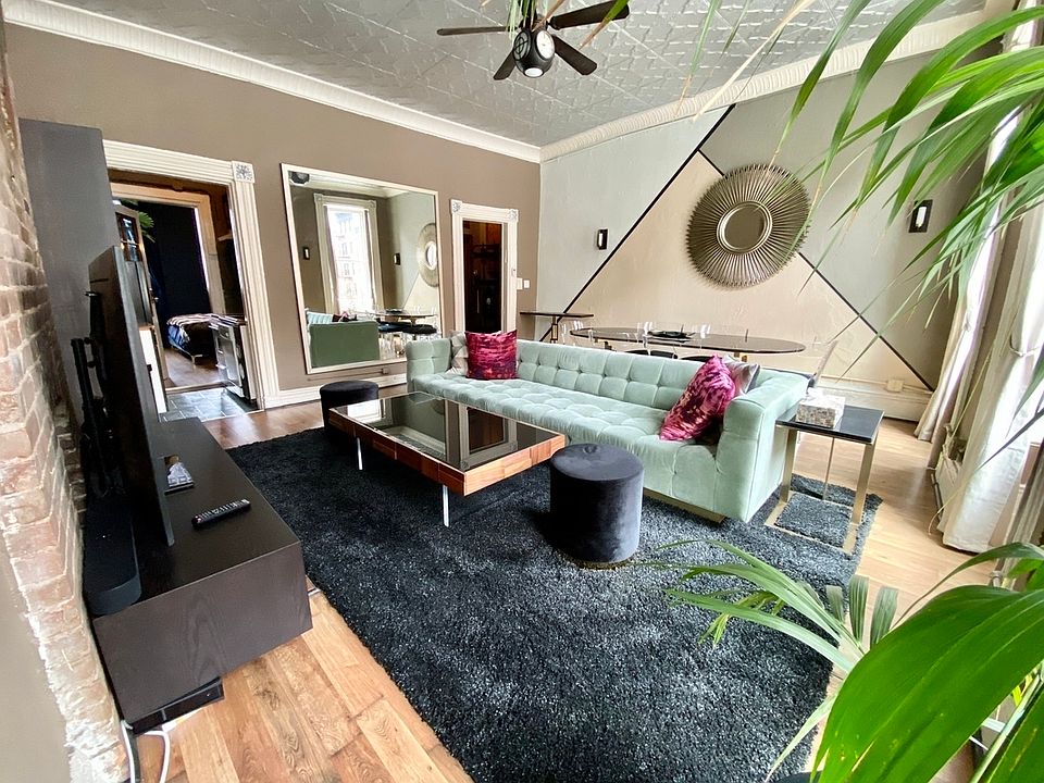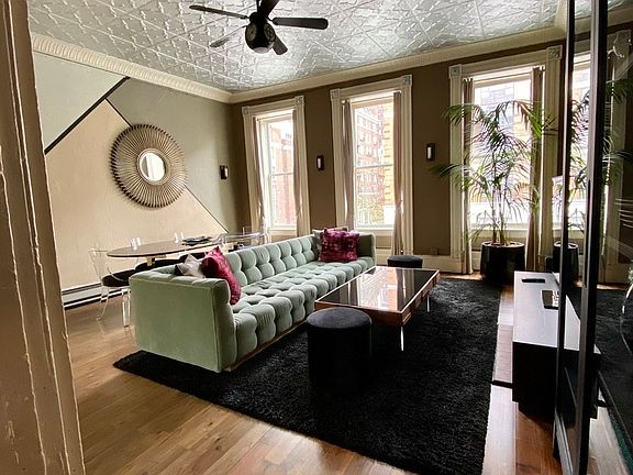 Bohemian charmer centrally located in the West Village! Spacious and bright, this floor-through, one bedroom apartment features 11 ft. tin ceilings, KING size bedroom with room for additional furniture, galley kitchen, hardwood flooring and dishwasher. Three, oversized windows flood the living area with lots of natural light. The massive living area can easily accommodate oversized furniture and dining table with room to spare. Spacious, super chic and ready for June 1 move in. West 4th Street station is conveniently located across the street as well as the 1 train a block away on Christopher. Video tour is available for your convenience and safety.