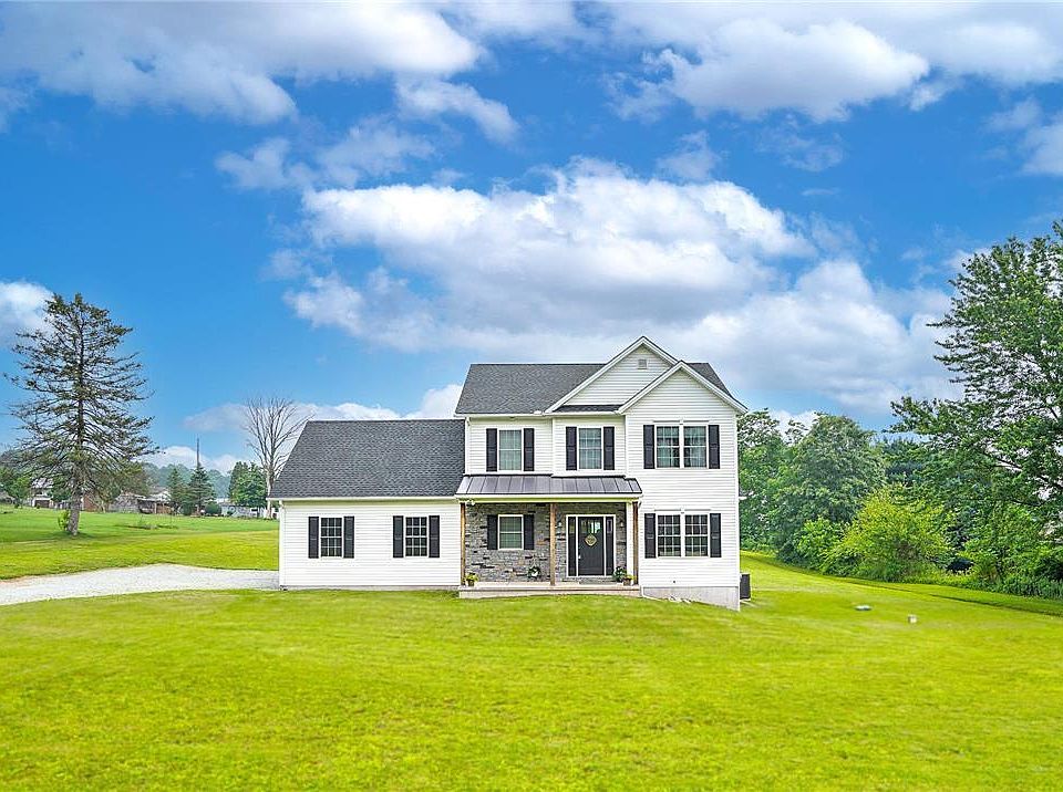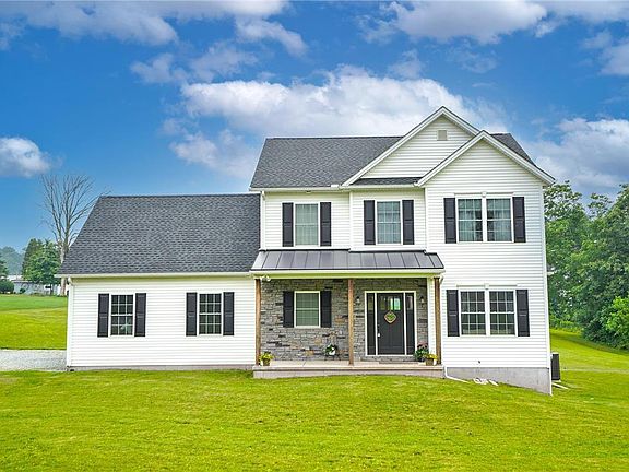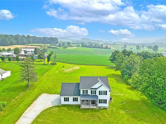 Multiple Offers Received. H&B 7/4 @ 5 PM. Nestled in rolling hills of bucolic PA farmland, this modern farmhouse offers rural living with contemporary style and convenience. The floorplan presents a welcoming foyer, with wood accented staircase, open to a front room made private via double pocket doors. Open concept living is found with a kitchen defining style and substance flowing effortlessly into the dining and family rooms. A large deck and the rear windows are situated to take in open fields and endless sky beyond. Main-level laundry, mud room, and half bath lead to a two-car garage. Upstairs a sprawling primary offers two closets and lovely ensuite. Two additional beds and hall bath are complimented by a bonus room, ideal fourth bed or added living space. Basement offers room for storage or expansion with full-sized windows and rough-in plumbing! This home offers peace of mind in like-new condition as well as with a convenient generator hook up, electric/propane heat and AC.