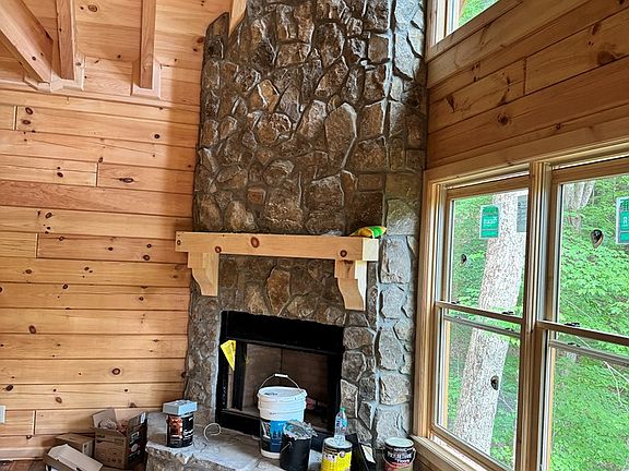 Perfect new log cain in one of the mountain's favorite places. Located between Blue Ridge and Ellijay on paved roads.Kight bright and open with soaring great room with floor to ceiling rock, wood burning , fireplace. Main level bedroom and full bath. Upstairs features a huge loft with half bath. The kitchen has custom cabinets and granite counters. Beautiful wood floors throughout give you a true mountain feel. Sit on the porch and enjoy all the mountains have to offer.