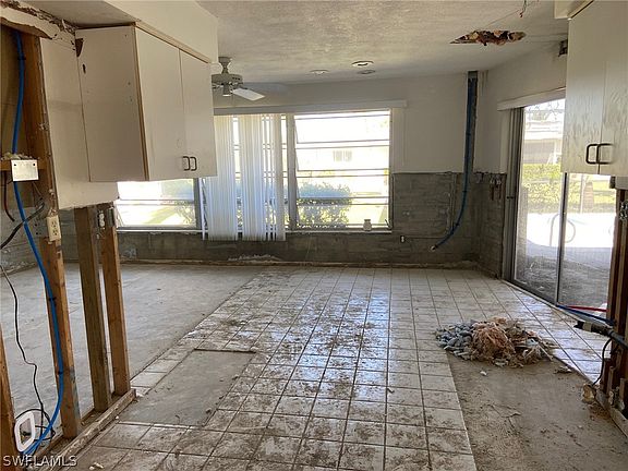 GREAT OPPORTUNITY TO LIVE IN A MULTI-MILLON DOLLAR NEIGHBHORHOOD. This is a 2/2 with a pool that suffered hurricane damage. It could be made into a 3/2, kitchen opened up for a more modern look. Double garage, lots of square footage. You have a blank slate to work with. Replumbed in January 2023. AC 2016. Roof 2005. Please note, pool has popped and cage is damaged. Cape Coral is one of the fastest growing cities in the nation. The Yacht Club Neighborhood is hot and close to the beach, restaurants with a quick commute to Fort Myers and RSW International Airport. All assessments paid. Home is sold AS-IS with no inspection period. All inspections to be done prior to submitting an offer. Cash Only.