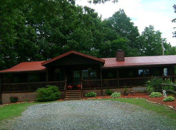 Gorgeous views from this beautiful, newly remodeled manufactured home. Not your typical mobile home. This home features log siding,new metal roof, over 800 sq ft of covered,porch with tung-in-groove ceilings. Lots of mature landscaping, with small,manmade pond and waterfall. Large sunporch/family room with hot tub, and lots of windows. Plenty of room with large master bedroom and large master bath with garden tub and walk-in-closet. Custom hardwood floors,sheet rock walls throughout, ceramic tile in the bathrooms. Large living room with fireplace and gas logs. Easy access and only minutes from town. Private and secluded feels like you are sitting on top of the world. Sit on the front porch and watch the sun set in the front yard!