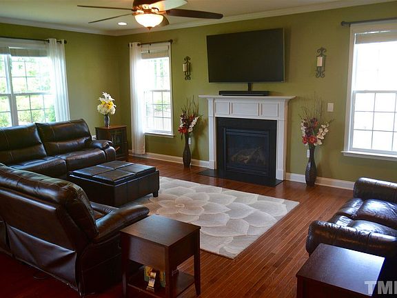 Room for everyone in this 4 years young home in Holly Springs. Downstairs hardwood floors, office w/ french doors, dining w/ bay window & coffered ceiling. Large living area w/fireplace open to kitchen & breakfast. Kitchen has island, granite, stainless, gas cooktop, double ovens, pantry. Tiled mudroom off Garage with built in bench/storage. Master w/ large closet/bath + 3 beds & loft on 2nd level. 3rd floor bonus w/full bath. Fenced yard, deck, patio. Exterior stone front, fiber cement, covered porch.
