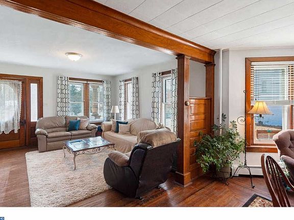 Nestled in the heart of Spring City is this charming brick twin which is situated on a corner lot with 4-Car detached garage. Enter the home from the covered front porch into the bright Living Room which has hardwood floors and ample sunlight coming through the windows. The hardwood floors continue into the large Dining Room which makes it a great place for entertaining. The Eat-In Kitchen is equipped with a double sink, Bosch dishwasher, electric range and breakfast bar. From the kitchen you can access the fenced-in backyard and the detached garage which provides off-street parking for 4 cars and has great storage above. Upstairs there are three bedrooms and a hall bathroom with a shower/tub combination. There is a third floor loft that would be a great space for an office or 4th Bedroom. The full walk-out basement which host the washer and dryer completes this home. The property is conveniently located close to Routes 724 and 422.
