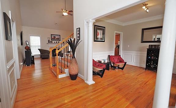 Entertainer & golf lovers paradise on tee box of 13th hole! Vaulted great rm, office w/ cherry floors & built in desk. Bonus w/surround/theater seating/Sony TV (all convey). Hot tub & surround in great rm also convey. Multi level sun deck, views of Tee box, fire pit, sunken hot tub, grill area-make a fabulous outside retreat! Seller recently added over $15,000 in upgrades. Enjoy golf living w/out HOA dues! Boat ramp use IF you join HOA. Close to Mooresville schools, shopping & Lowes Y.