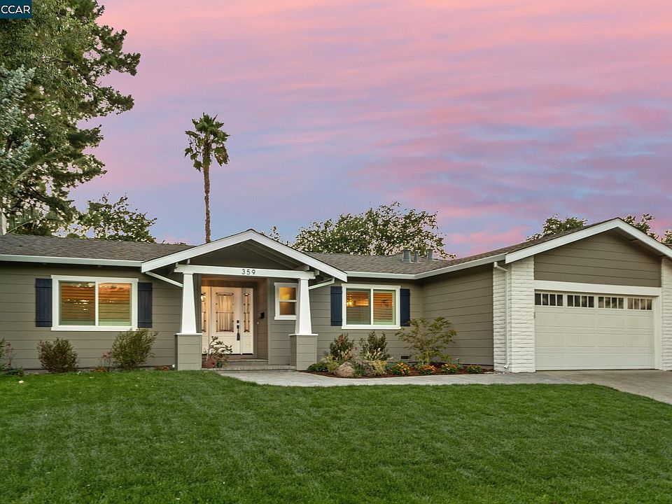 Located in the heart of Northgate in Walnut Creek, 359 Caravelle Drive epitomizes elegance and modern luxury. This exquisitely remodeled single-level home spans 2,378 square feet on a generous 10,000 square foot lot. Step inside to discover French Oak engineered hardwood flooring throughout expansive living spaces. The living room, featuring a cozy fireplace, flows seamlessly into the formal dining room with new wood shutters and built-in buffet cabinetry. The chef-inspired kitchen boasts Quartzite countertops, new Shaker cabinetry, and top-of-the-line stainless steel appliances, with a large center island for meal preparation and casual dining. Retreat to the primary bedroom suite with a spacious walk-in closet and an en-suite bath featuring dual vanities and a luxurious spa-inspired shower. The secondary bedrooms are generously sized with plush carpeting and ample closet space. A dedicated office with built-in shelving offers an ideal remote workspace. Additional features include a new 30-year composition roof, updated HVAC system, and meticulously designed landscaping with new porch pavers and a sprinkler system. Welcome to your new haven at 359 Caravelle Drive.