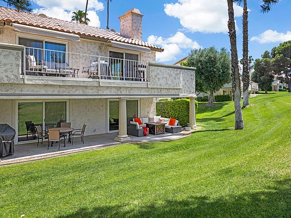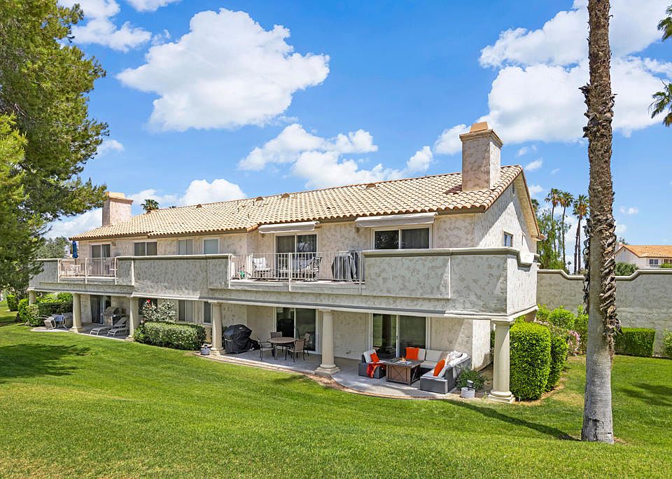 THE BEST OF RESORT LIVING located on the '13th Hole' this Beautifully TURNKEY FURNISHED Upgraded, Meticulously Maintained 3bedroom/2.5 bath with newly remodeled kitchen, boasting granite slab countertops, Quality Cabinetry, Stainless Appliances, Gas Range and a cozy light bright kitchen nook with 3 bay windows and plantation shutters. The large living room is complete with fireplace and upgraded glass slider doors leading out to a long back patio on the golf course. Flooring throughout is a neutral palette, with hallways leading to bedrooms on either side of the condo, with a half bath and laundry room in between Bedroom ensuites and upgraded bathrooms. This fabulously upgraded with property with NEW windows, its multitude of upgrades is move-in ready for you to begin enjoying the Resort Lifestyle with Tennis, Pickleball, Fitness Center, 29+ Pools & Spas, ALL included in your HOA Dues as well as Cable, Wi-Fi, Building, Grounds and Roof maintenance, 24hr Guarded Gate, and Roving Security! Desert Falls Country Club has it all! The 18-hole Scottish Links Championship Golf Course is pay as you play or choose to purchase a membership. Centrally located mid-valley, within walking distance to shops, restaurants, and mere minutes' drive to Acrisure Arena & El Paseo. This Uniquely Upgraded Condo is not to be missed! **HOME WARRANTY IS PAID THROUGH 3/2027. HIGHLY SUCCESSFUL 5 STAR RENTAL** RENTAL HISTORY AVAILABLE**