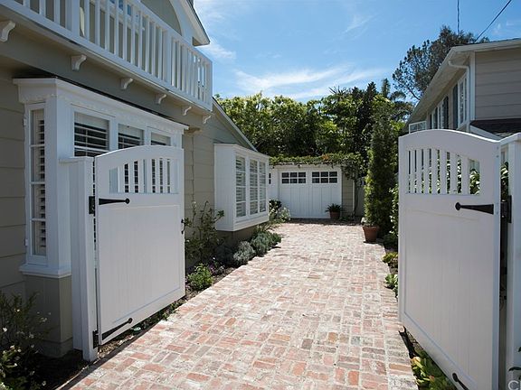 This immaculate beach cottage reflects the simplicity of its original 1936 character. Offering 3 bedrooms and 2 baths, the home is introduced by a gated brick driveway and slate stone pathway through serene gardens to a Dutch entry door. Large window expanses illuminate the original wood floors, white open-beamed high ceilings, stained glass, vintage door and window hardware, window seats, and wood walls. Warmed by a brick fireplace, the living room is appointed with built-in cabinetry that showcases leaded-glass doors and original French doors open the dining area to the inviting back yard. Thoughtfully remodeled kitchen with farmhouse sink, interior laundry, downstairs bedroom and bath. The upstairs is anchored by an ocean view master bedroom, a guest bedroom, and a bath with an antique vanity, mosaic-tile floor, and vintage claw-foot tub. The garage is located behind the house with parking for one car and an adjacent 200 sq. ft. of flex space ideal as an office or art studio. Located in Woods Cove, within 3 blocks to the ocean, this warm and welcoming cottage is convenient to Laguna's sandy beaches, unique galleries, popular restaurants and vibrant shops.