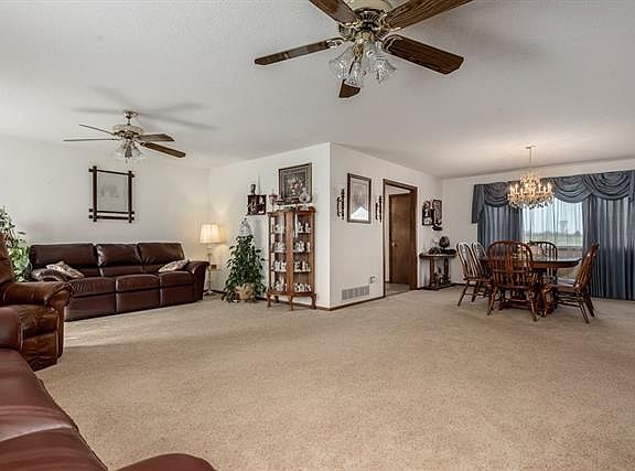 Awesome Country living showcasing the Beautiful view of 28 Acres. Great open floor plan with this 3 Bed/2 Bath Ranch Home w/1980' when you include the Large All Season Sun Room off the kitchen (360 sq. ft.) equipped with AC & Heat. 1620' unfinished in the basement for additional living space. Outside enjoy the 1 Acre Stocked Pond, and morning coffee or BBQ under the covered patio. In addition their is 4 garage spaces w/oversized 2 car garage with large, deep work cabinets 27'8 x 29'6 ; & A Detached 2 car garage/shop and patio all under one roof, 24x34 (24x24 garage/shop, 10x24 patio). Large Pole Barn 60x64, rocked, with skylights w/(3) 10'10.5 x 9'7 sliding doors and 2 walk in 3' doors. Around the pole barn it is nicely fenced for horses, has A Brome hay field, a 12'16 shed with electricity, and the property is fenced on all 3 sides.