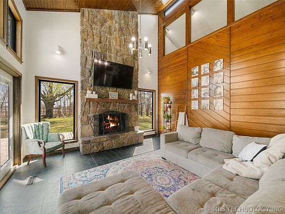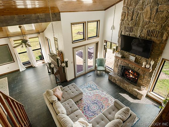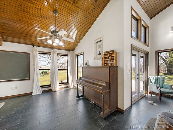 This is the property you've been looking for: 4 bed + bonus room, 3 full bath, with large closets, storm shelter, vaulted ceiling, updates, and views! Outside boasts an in-ground saltwater pool, an 8 stall barn w/ hay loft, electric, and water, and 24.76 fenced acres with large pond. Pesticide free young mini orchard, garden, and fruit bearing plants. Recent upgrades and updates include aluminum siding with 50 year transferrable warranty, metal roof, heat pump, and brand new windows throughout!