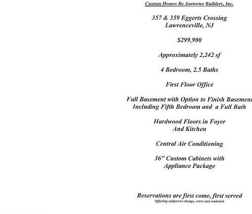 TO BE BUILT! Custom semi-detached home offering 4 bedrooms, 2.5 baths, office, 15 x 10 deck and optional finished 30 x 15 basement including bedroom and full bath. Close proximity to Rider and College of NJ. Square footage and dimensions are approximate