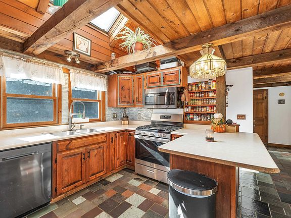 Nature Lovers Dream!! This 4 Bedroom, 2 Bath, post and beam cape, capped with a metal roof, offers privacy galore just under 1 mile off Exit 17, Route 16 for easy commuting north or south. There is a riding ring area to your left as you drive up the gravel driveway to view the home. This rustic home features a warm and inviting fireplace living room, formal spacious dining room, fully applianced kitchen with loads of counter space and rugged slate flooring extending out to the laundry/entry area & a full bath. A guest bedroom/office, and the Primary bedroom with soaring cathedral ceiling allows direct access to your private sunroom overlooking your very own private pond rounding out the main floor! The second floor of this home features two more cozy bedrooms with access to storage under the eves, as well as a 2nd full bath. The major systems have been updated to include a Buderus furnace. A 2 car tandem garage under will keep your vehicles out of the ever changing NH weather. For animal lovers, this property features a 2 stall barn with fenced in paddock area, hay loft, running water & electricity, and a good sized hen house. Ducks are in good supply around the private pond area just outside your back door.  The land here slopes uphill from the road and is well wooded giving  lots of protection from road noise. I spotted a couple deer travelling thru the property and I am told wild turkey are a common sight here also.