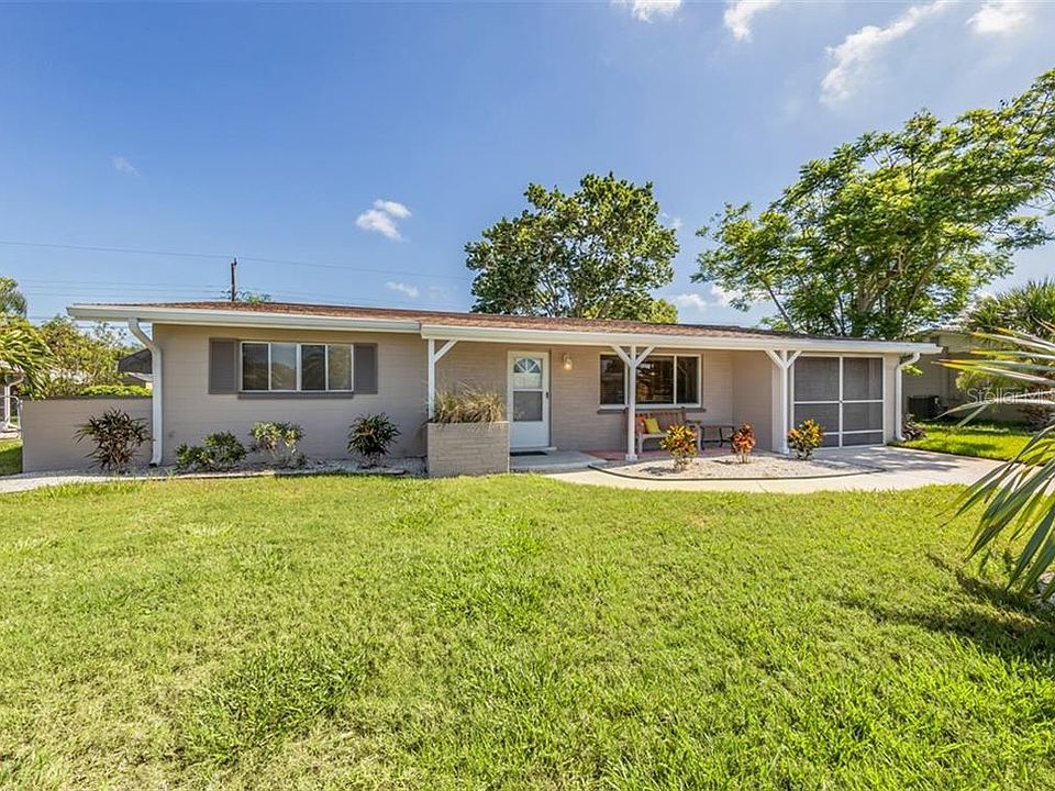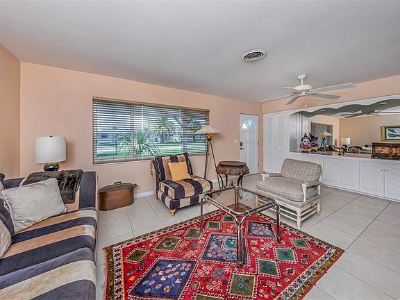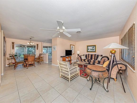 Adorable, affordable, and move in ready! This cozy Venice Gardens cottage features all the modern conveniences in an ideal location. A welcoming covered front porch surrounded by well maintained landscaping has a desirable curb appeal. This home features a spacious living room with built in storage and shelving and large impact glass window. Dual sliding glass pocket doors from the dining room and kitchen open to the large sunny Florida Room with classic Terrazzo flooring and an a/c unit. Enjoy morning coffee, evening cocktails, or use this space as an office, den, or play area. The adjacent screened lanai and a fully fenced backyard provide for additional options to enjoy the outdoor space. Two bedrooms and adjacent full bath along with plenty of closet and storage space allow for you to feel at ease and comfortable in this home. The kitchen features white kitchen cabinets and a quaint breakfast bar area. Direct access from the kitchen to your oversized 1-car garage where you will find it to be partially finished with a full second bath, laundry area, and plenty of extra storage space. The garage has a screened door to allow in the breezes making this garage space extra versatile. This home features 8' tall ceilings, ceramic tile throughout, newer interior doors, fresh neutral paint, newer roof (2017), newer air conditioning system (2016), and the water lines have been replumbed. Don't miss this opportunity for a perfect retirement snowbird retreat, first time home buyer, or investment property. Venice Gardens features an optional community pool membership, and is in an ideal location, centrally located to Historic Downtown, beaches, parks, schools and more.