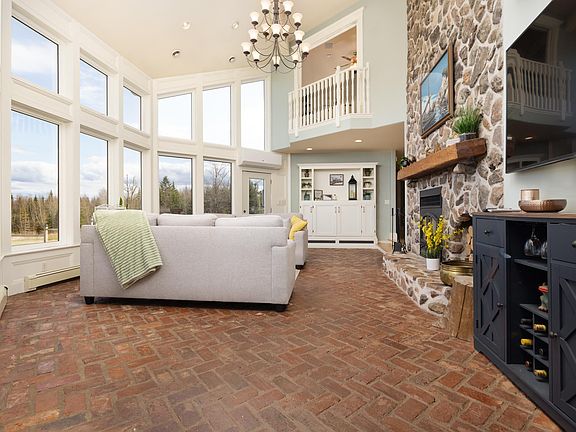 This architecturally designed impressive 2 Storey home is available and ready for a new owner. Set well off the road and on a 7.36 Acre Lot, this one-of-a-kind property is supremely private and a complete escape from the hustle and bustle of city life. This entire home exudes class and style, there is an abundance of unique design features making sure this property stands out from the rest. Enter the Foyer and immediately you are impressed by the openness and amount of natural light. The main hub of the home is the huge, vaulted Living Room with both floor to ceiling windows and Field Stone fireplace, plus a unique brick floor. The area is overlooked by a balcony in the Library area and a Juliet Balcony off the Primary Suite. To one side of the Living Rm is the Dining Nook & Kitchen which features a huge island and cupboard space to make any chef smile. The Formal Dining Rm is handy to the Kitchen and an amazing Coffee Bar is built into the rear of the Living Rm Fireplace. The other side of the home features an office with Fireplace for the high-flying business tycoon, bright, cozy, and practical, this will make you want to be at the office. A Mud Rm leads to a triple car garage. Upstairs is equally impressive with 3 Large Bdrms including a Primary Suite with walk-in closet and a Spa like ensuite with jacuzzi tub and stand-alone shower. Want your own oasis? The Primary Suite has its own private deck for coffee overlooking the estate. The updated Basement will not disappoint and features the following Rec Rm, Den/Office, Family Rm (Currently a guest bdrm with no window), Gym Rm, Utility Rms and Half Bath. Connected to the house via a breezeway is a One Bdrm, One Bath, In-law Suite complete with its own single car garage, Living, Kit & D/R. The Grounds are stunningly serene, and the silence is only broken by the family enjoying the inground pool or Gazebo. The home enjoys 5 ductless heat pumps and freshly finished flooring on the main level. This is a must see home!