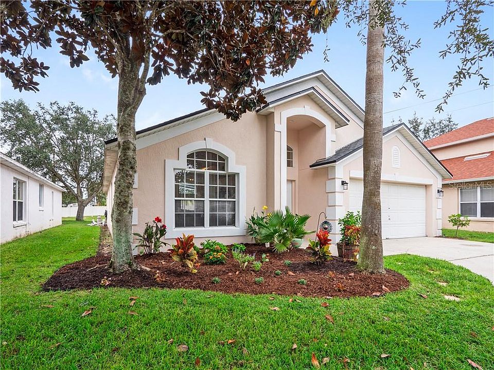 MOVE IN READY! The property is located in GATED COMMUNITY. Kitchen equipped with all STAINLESS STEEL APPLIANCES. Spacious Master bedroom overlooking the pool area. In the UPDATED MASTER BATH, you can enjoy the garden tub or the separate shower and a separate toilet room and WALK IN CLOSET. SECOND BATHROOM ALSO UPDATED. Double garage . Enjoy the sunny Florida weather in FULLY SCREENED POOL. Roof was just replaced 2018, AC 2019, Screen 2019, Fridge and Dishwasher 2017, Pool pump 2018. Community CLUBHOUSE and pool with picnic areas with outdoor grills, FITNESS CENTER and community library room. Easy access to Hwy 192 & I4, in the heart of Four Corners. LESS THAN 30 MINUTES TO DISNEY. 10 MINUTES FROM ALL THE AMENITIES AT CHAMPIONS GATE. Come see this beautiful house before it is gone!