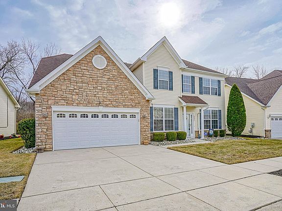 Welcome to 359 Juneberry Way to this highly sought-after 55 Adult Community. This two story home has over 2,400 square feet of living space. .As you approach the home, you notice the beautiful curb appeal with stone and vinyl siding. Step inside the large foyer with hardwood flooring and shadowboxing . To the left, you will find an office and to the right formal dining room w/crown molding hardwood flooring and shadowboxing. The large eat-in- kitchen with overhang for 3 bar stools is the perfect room to entertain guests. Shaker cabinets with granite countertops, stainless steel appliance package, a pantry, and recessed lighting . This room is open to the family room w/recessed lighting, cathedral ceilings and gas fireplace for those cold evenings of just relaxing. On the first level, you also find the primary suite with a tray ceiling, a walk-in closet and a gorgeous primary bath. The primary bathroom has a walk-in tile shower, a jetted tub "as is", large vanity, dual sinks, tile flooring and is handicapped accessible. Also on the main floor is the laundry room which includes washer, dryer, utility sink and space for hanging clothes to dry, and a convenient closet for storage. Just off this room is the attached two-car garage with garage opener and inside access. To complete this level, there is a generous coat closet and half bath, making true one-floor living possible. Upstairs you will find second bedroom with a full bath with shower/soaking tub, and a separate loft-style sitting room. This is perfect for guests to enjoy their own separate living space. or additional living space or your at home gym. There is also a large 16X11 utility room upstairs for additional storage. Out back to your private backyard backs up to the woods which is wetland protected so no building going on behind you. There is a stamp concrete patio with plenty of room to barbecue and seating area. Perfect tranquility for outdoor living. Located close to the Community Club House, you are a short stroll away from the pool, gym, basketball courts and Billiard room. Conveniently located to restaurants, movies, mall and shopping centers. Put this property on your list of homes to see. You will love all the space and storage this property has to offer. Make your appointment today!!