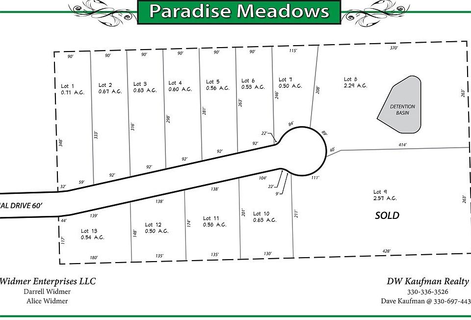 Paradise Meadows - 13 scenic lots on cul de sac city street - paved streets with curb and sidewalks - underground utilities. 11 lots with approximately .50 acres + or-. The home restrictions are from 1800 sq ft for a ranch to 2200 sq ft on a two-story. Beautiful scenic subdivision with great potential!