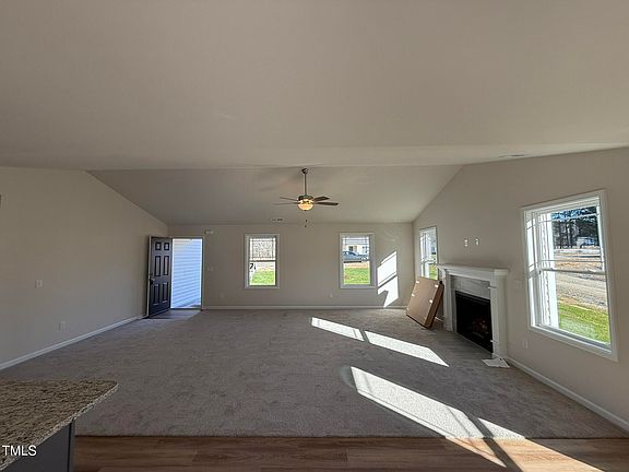 Beautiful open ranch plan in new Stoney Fork subdivision! This plan features a cozy family room with fireplace that is open to the island kitchen that features granite countertops, stainless steel appliances, tile backsplash, eating nook and FRIDGE! Owner's suite with trey ceiling, dual vanity, soaking tub, sep shower and WIC. Two additional bedrooms share a full bath. Patio in back! See agent remarks!
