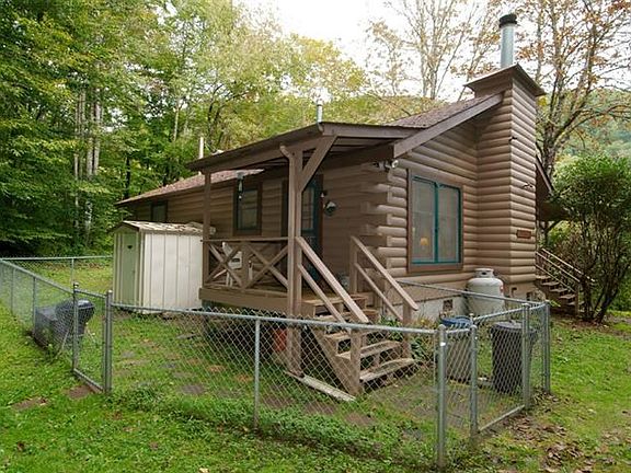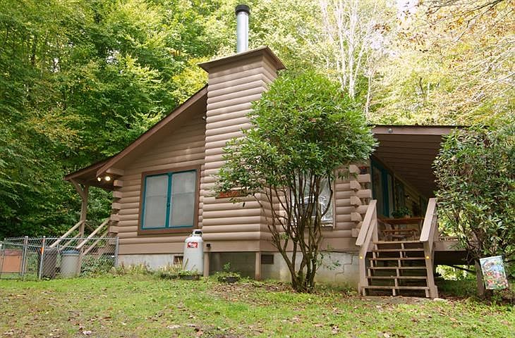 -Sit in the woodside hot tub & look at the Milky Way or listen to the sounds of the nearby rushing creek! This picture perfect log home at 4100 foot of elevation comes fully furnished, has good rental history, & is ready to move in to or add to a rental program. One level living with wood burning fireplace, on demand hot water system, & stained in the last 2 years. With this elevation A-C is not needed, but there are window units for those who really want to be cool in summer. Suitable for year around use with insulated floors. Exterior offers covered covered front porch with distant mountain views & a fenced back yard. The home is located 10 minutes or so to the Town of Maggie Valley, Blue Ridge Parkway, and 25 minutes to Cherokee. This are of the county frequently sees elk among other local wildlife.