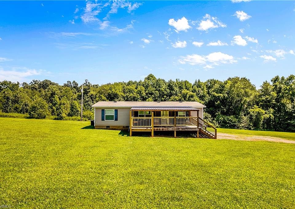 **Back on the market at no fault of the sellers.** Well maintained manufactured doublewide located in the Melton Meadows neighborhood. You will love the beautiful flooring, spacious and open living areas, and large primary suite with walk-in closet! Huge back yard lined with trees provides a more private lot. Enjoy evenings on the roomy covered, front porch. Amazing location that is convenient to I-77, Stone Mountain State Park, Elkin, and State Road.