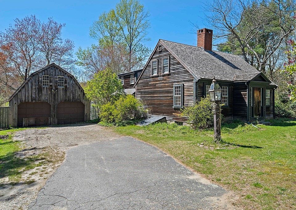 Antique Cape situated on 1.5 acre private level parcel with many possibilities. This unique 3 bedroom / 1 bath home is in need of significant renovations but could certainly be restored to a charming residence. Pretty ship board flooring and nooks throughout. 4 fireplaces! Two car detached garage with work shop and stairs to a room upstairs that would make a neat home office. Equestrian possibilities! In-ground pool and grounds could be restored to further improve this property creating a delightful estate. New Heating system. New electrical panel. Minutes to beaches, shopping, restaurants, schools and all that magnificent Marshfield has to offer!