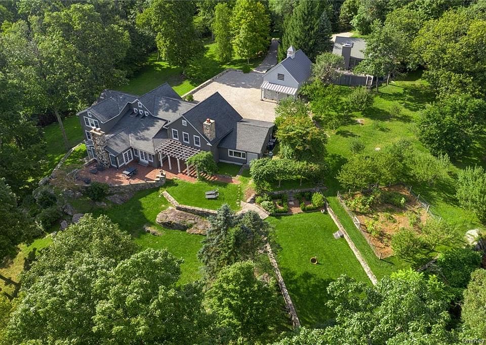 STUNNING HILLTOP COMPOUND WITH RARE VIEWS & EXCEPTIONAL PRIVACY on a quiet country road in the heart of Katonah's finest estate area. Surrounded by woods, meadows & Conservancy land, unique ammenities incl main house in as-new condition, 2 story/2+BR, 2 1/2 bath cottage w fplc, garage, deck & views, fabulous Post & Beam car/horse/art barn w loft, garage parking for 8, classic motor court & VIEWS! Minutes-to-village location w/ serene landscape incl brook/waterfall, organic garden, orchard, grape arbor. The pristine main house features a sun-filled, open floorplan w bright, well proportioned spaces & mountain views from almost every room. Wide board reclaimed wood floors, vaulted & tray ceilings & massive stone fireplace compliment the country ambiance. Outdoor living provided through sets of double French doors onto the mutli-section patio overlooking the grounds & views. Spectacular pool site. Generator. Note bedrm/both/rooms/soft is total finished living space, main house & cottage.
