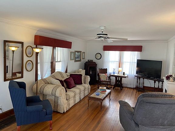Cozy bungalow on fenced lot backs up to Jimmy Nash Park. The charming front porch lets you enjoy entertaining or just enjoyi the fresh air. Dead end ST means min traffic. Enter to orig hdwd floors on main. Spacious LR with built-ins that adjoins the DR and KT. KT w/all appliances and ample cabinets. The luxury of 2 full BAs includes updated guest bath. The Primary BR is on the main level and has an updated Primary BA w/walk-in shower. Follow the staircase to BR 2 and bonus that could be BR 3. Just outside KT is a LU area and entrance to the full basement where newer furnace and water heater are housed. Seller states the bsmt is dry so it affords lots of storage. You can access the fenced backyard from the side porch or backdoor